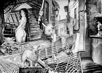 | Ноев ковчег. Из серии "Игра структуры" (б., уголь, белый графит; 50х70; 2005г.) |