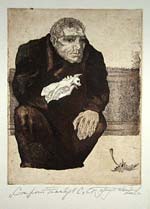 Старый боксёр (офорт, 19,5х15, 2001) Натюрморт (литография, 30х41, 2001) Сад (офорт, 27,5х16,5, 2002)