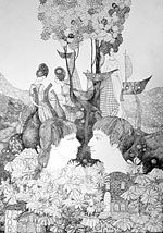Работы выполнены на бумаге пером тушью.